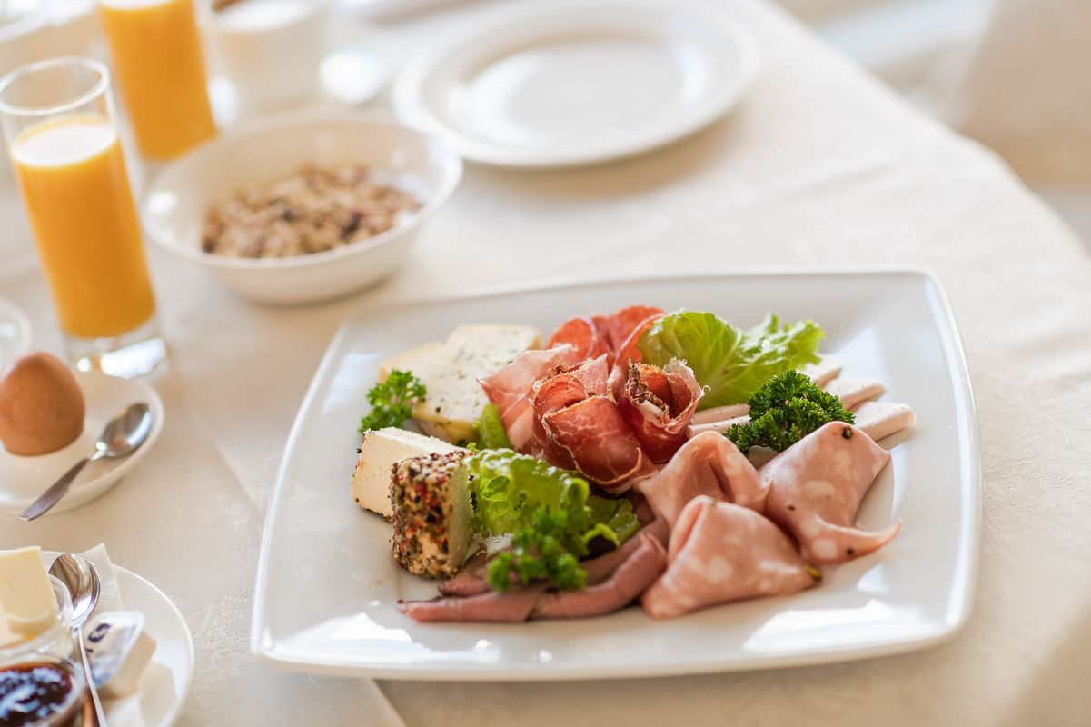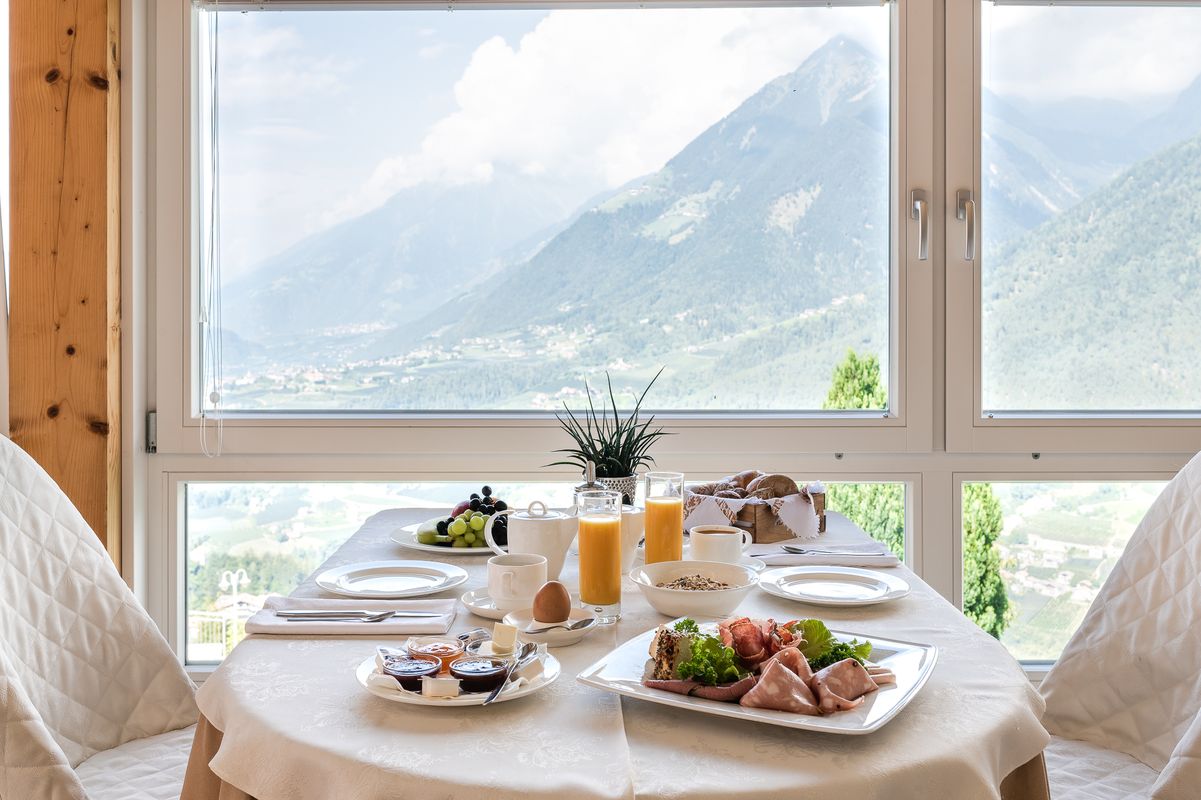 Täglich erwartet Sie von 8.00 bis 10.00 Uhr ein reichhaltiges Frühstücksbuffet mit frischem Obst, fruchtigen Marmeladen, Südtiroler Honig, verschiedenen Müsli mit Joghurt, leckeren Eierspeisen, herzhafter Wurst- und Käseauswahl, knackfrischem Brot, Tee und einem duftenden Kaffee.